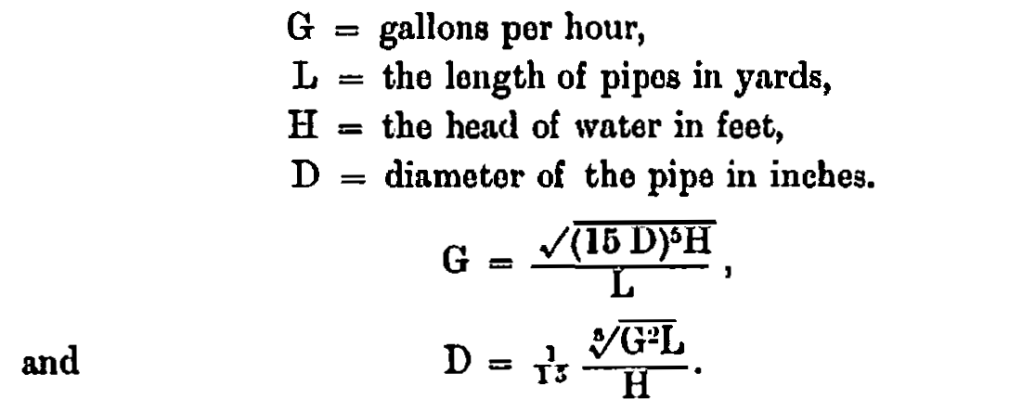 Hawkesley’s formula for the flow of liquor through pipes, where—