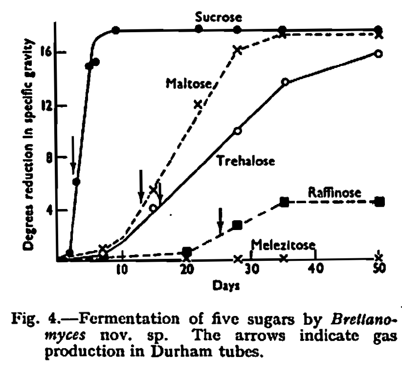 The new strain differed from Brett. anomalus in its ability to ferment sucrose rapidly, in its ability to ferment maltose, raffinose and trehalose slowly, and in its ability to assimilate maltose, erythritol and trehalose.