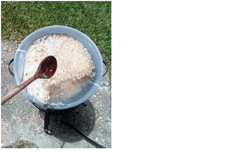 Now I let it mash for an hour. I use a sophisticated insulation method of wrapping an old beach towel around the pot. I stir and check the mash temp every fifteen minutes or so. I will usually add a few seconds of heat 2-3 times in the course of the mash. Important safety tip: take the towel off when the burner is on. At this point anyone who remembers the stovetop temperature mash method where direct heat can be applied to the mash will see the similarities. And that ability to heat it allows you to perform the next step, which I think is critical; a mash out. I heat the grist up to 168 and hold it for five to ten minutes stirring a few times to make sure everything is heated up, loose and flowing.