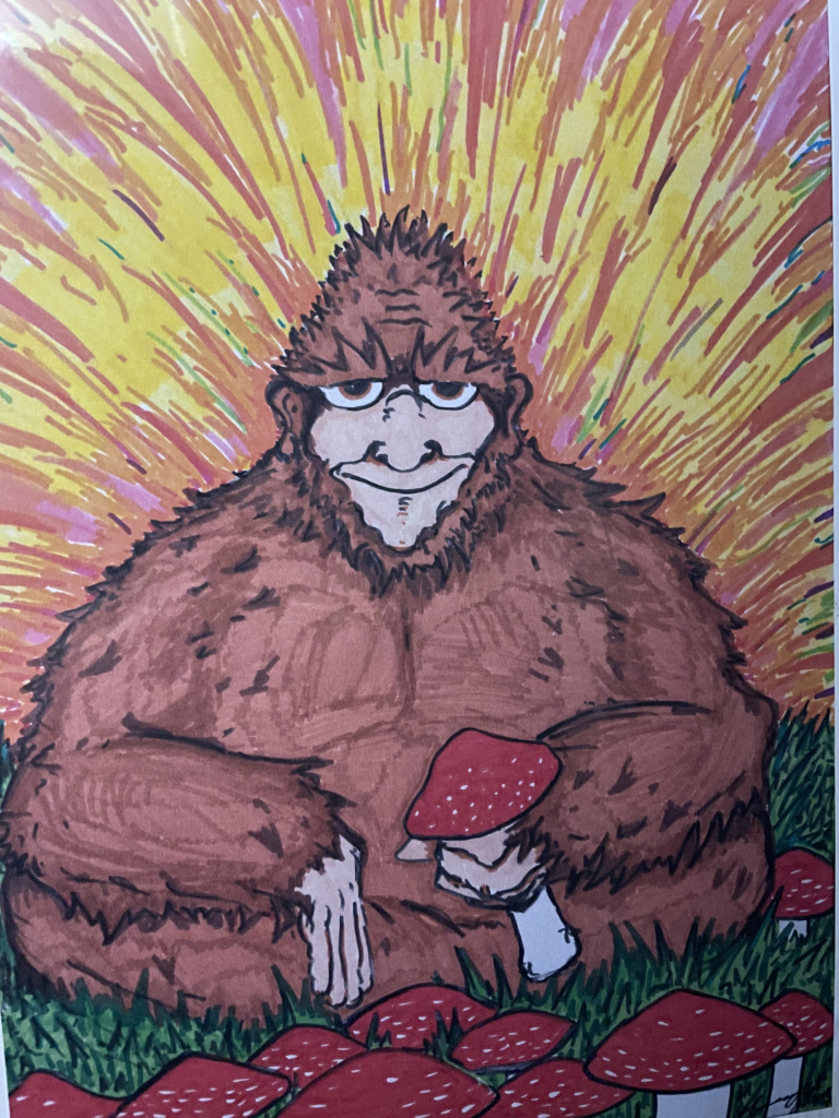 On my last day in Yakima I decided to expand my horizons a little bit and drink some cider. A couple of brewers had mentioned Tieton Cider Works, so I made my way there. As it turns out, Tieton Cider works also brews beer, so I wound up drinking beer. A lot of beer as it turns out. They have 6 beverages on tap, 3 ciders and 3 beers. They have a flight that lets you taste all of them. Perfect. All of the ciders and beers were good. One of the ciders had habanero in it, which I know from practice will give me heartburn, so I only had a sip of that one, but it was very tasty. As I’m enjoying my flight a guy comes in throwing off some major Tom Bombadil vibes. He had a grey beard down to his waist, was carrying a box of vinyl records, and had a hat that looked like it was made from a lily pad. He sat down next to me and started talking to the bar-tender Ahryn (pronounced Aaron) and it was clear that this guy was good friends with the owners or maybe an owner or was somehow related to the brewery side of things. I told him I was in town trying beers yada yada and he asked what my favorite beers had been so far. I mentioned the spruce tip beer at Wandering Hop and he suddenly got really excited. He told me that he started a tradition of brewers going out into the woods and taking hallucinogenic drugs, picking spruce tips and brewing a 50-gallon batch with river water and a bonfire. He started it in the early 2000s and by 2010 most of the major breweries in town were somehow involved. Ahryn had been going since 2018 and when Tom Bombadil (I never got his actual name, so I’ll just go with this) asked him if he had any of the beers; he immediately produced 3 from under the counter. There was a spruce sour from 2019, a spruce stout from 2021 and a spruce wheat wine from 2022. Tom said “Let’s give them a taste” and Ahryn immediately popped them open and we started trying them. I was beyond impressed; all of them had that almost cola like spruce property, but were still extremely varied and interesting. I said that of the 3, the stout was my favorite because it was the most unusual spruce tip beer I had tasted. Tom said he didn’t care for it because he had made a much better one several years before. Eventually Tom got up to leave and Ahryn asked him if he wanted to pay for his drinks, I told him to put them on my tab and Tom thanked me and then told Ahryn to give me an open tab. I know that’s confusing. Several hours passed and I was getting ready to call it an evening when Tom showed up again holding a bottle of spruce tip stout from 2015. We cracked it open and maybe I had just had too much to drink, but it tasted more or less like the one from ’21. Either way it was very good and I couldn’t believe he went home and got one just for me to taste. By now it was 10 pm and the cider works was closed. We all went into the parking lot and discovered that someone left a weird drawing of Bigfoot on my truck. Tom laughed and said it’s good luck.