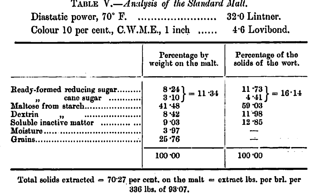 In 1885 one of us, in conjunction with Mr. Walk’s Evershed, published an article entitled “A Method of determining the Extract of Malt, and some Facts connected with the Effect of Time and Temperature on Experimental Mashings” (the Brewers’ Guardian, January 13th, 1885). The publication in a Brewing Journal (before the days of the Institute of Brewing) limited, one would suppose, the publicity the matter might possibly have attained, and taking this into consideration, together with the fact that in the light of further experiment a value attaches to the results which was hardly perceived at the time, we have ventured to reproduce the more important features of the work.