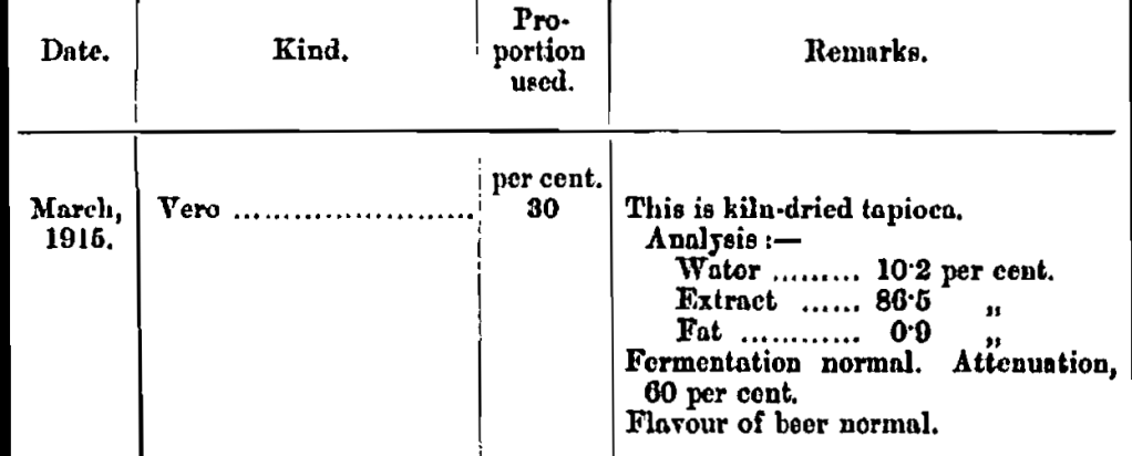 The prices paid for the malt substitutes were very high. The vetches fetching 350 francs per 100 kilograms, and the beans, 600 francs. But some of those with a high albuminoid-content proved of value as yeast food in the very thin worts, in this respect counter balancing the disadvantages of high percentages of water and fat.