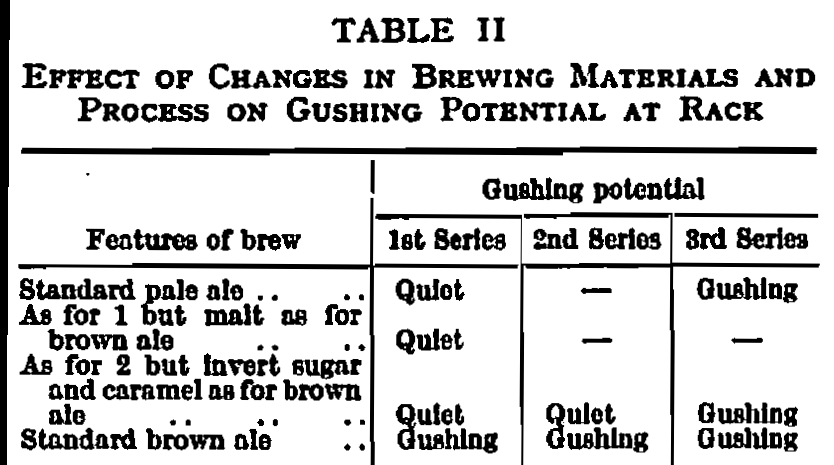 Whatever the explanation, it is clear that, given a wort of zero gushing potential, it does not necessarily follow that the beer will have the same desirable quality.