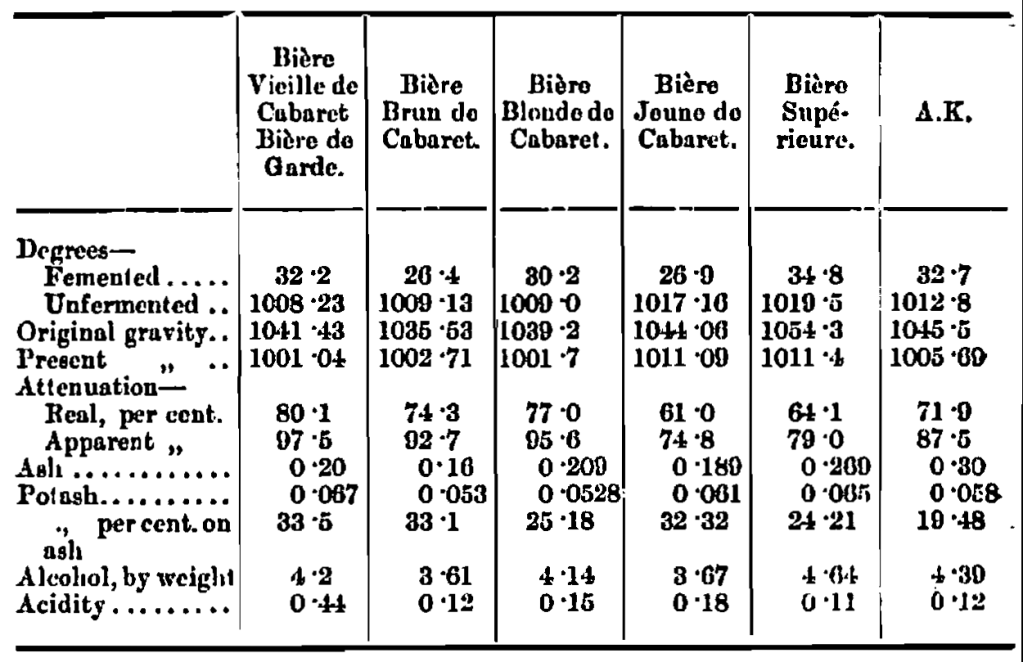 The following are the results of analysis of some typical beers of the various classes, with an English “A.K.” for comparison :-