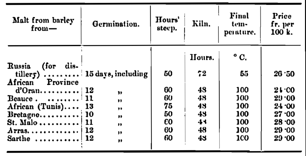Malt.—One-third Tunis. One-third Beauce winter barley and one third Beauce or country barley.