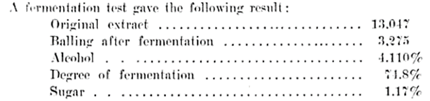 All the above-mentioned bacteria were inoculated into finished bottled beer and the bottles placed into a thermostat for 14 days, whereupon they were examined microscopically. In nearly all bottles an increase of bacteria was notice- able although most of the bacteria were destroyed in the course of time. The only bottle which showed a slight increase was that inoculated with the staphylococci isolated from the Oregon hops of 1905, but here also the staphylococci were greatly retarded in their development. No harmful influence was observed in any instance.